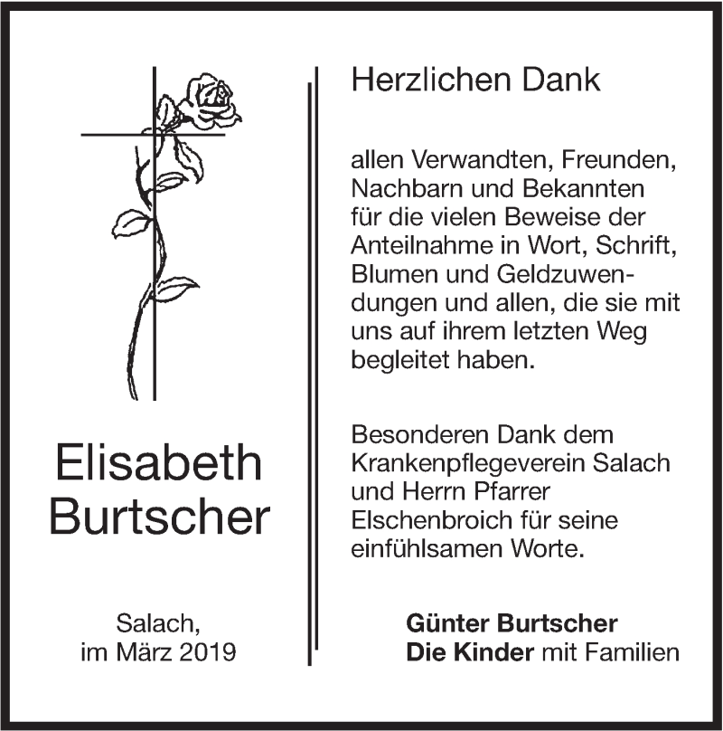 Hier finden Sie alle Traueranzeigen aus der Zeitung, die bisher für Elisabeth Burtscher erschienen sind. Weitere Traueranzeigen, die in der Zeitung erscheinen, werden hier ebenfalls aufgelistet