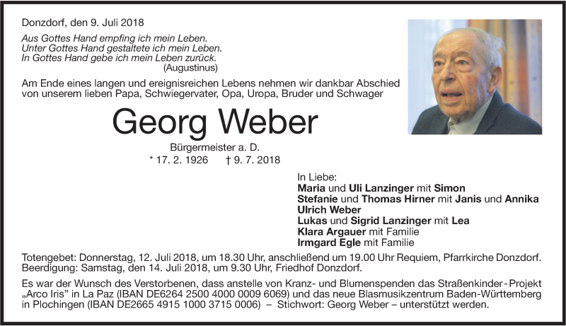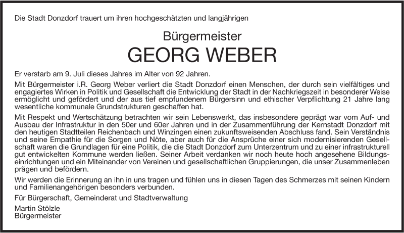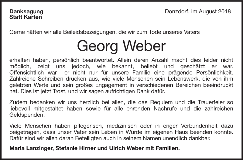 Hier finden Sie alle Traueranzeigen aus der Zeitung, die bisher für Georg Weber erschienen sind. Weitere Traueranzeigen, die in der Zeitung erscheinen, werden hier ebenfalls aufgelistet