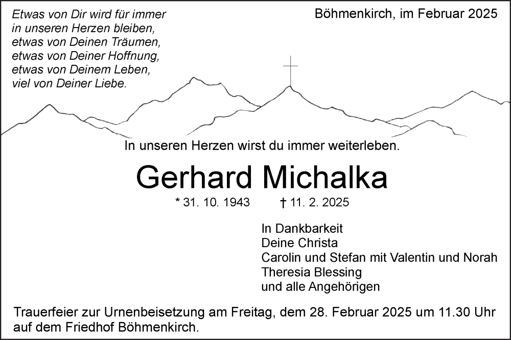 Hier finden Sie alle Traueranzeigen aus der Zeitung, die bisher für Gerhard Michalka erschienen sind. Weitere Traueranzeigen, die in der Zeitung erscheinen, werden hier ebenfalls aufgelistet