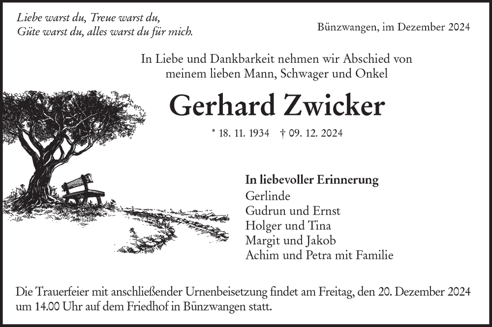 Hier finden Sie alle Traueranzeigen aus der Zeitung, die bisher für Gerhard Zwicker erschienen sind. Weitere Traueranzeigen, die in der Zeitung erscheinen, werden hier ebenfalls aufgelistet