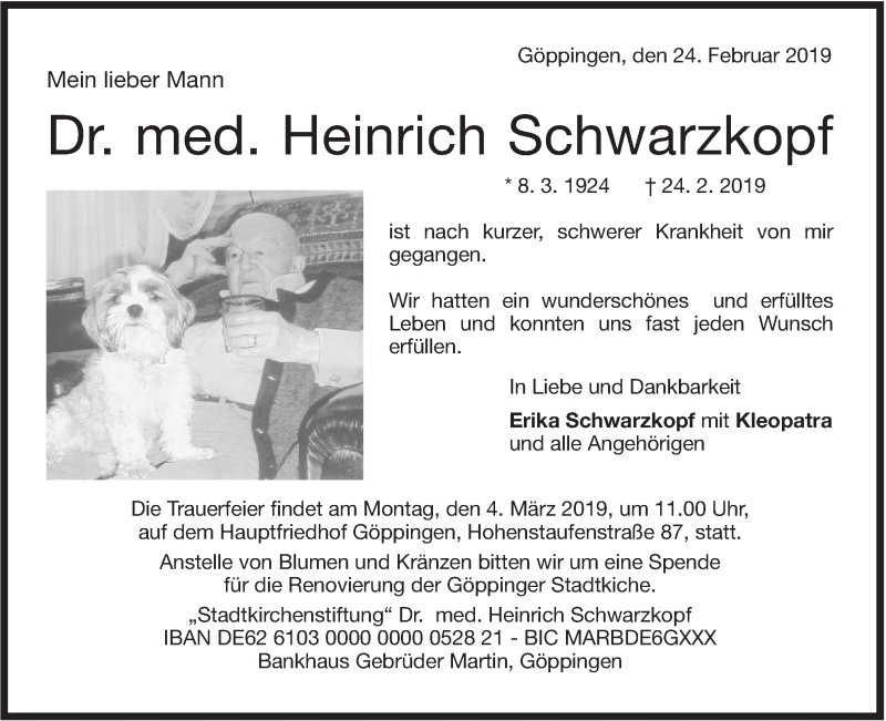 Hier finden Sie alle Traueranzeigen aus der Zeitung, die bisher für Heinrich Schwarzkopf erschienen sind. Weitere Traueranzeigen, die in der Zeitung erscheinen, werden hier ebenfalls aufgelistet