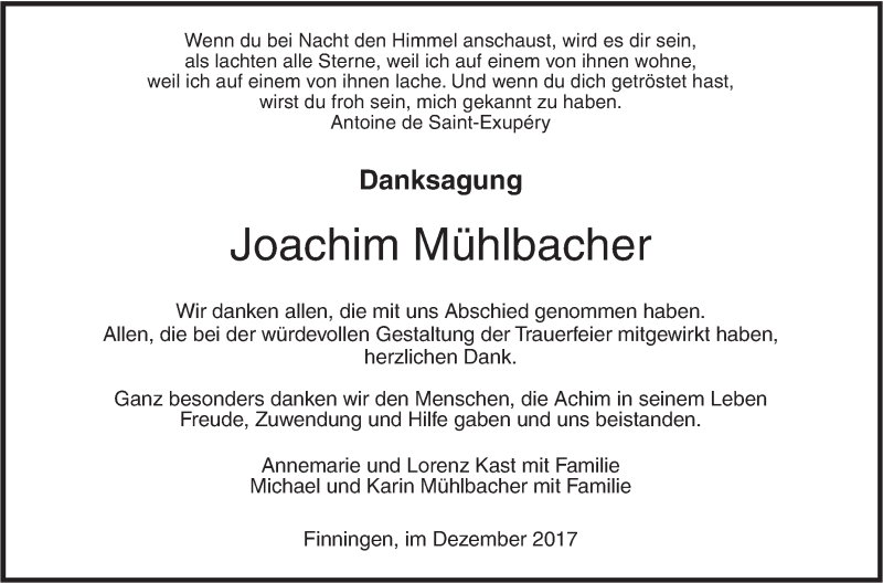 Hier finden Sie alle Traueranzeigen aus der Zeitung, die bisher für Joachim Mühlbacher erschienen sind. Weitere Traueranzeigen, die in der Zeitung erscheinen, werden hier ebenfalls aufgelistet
