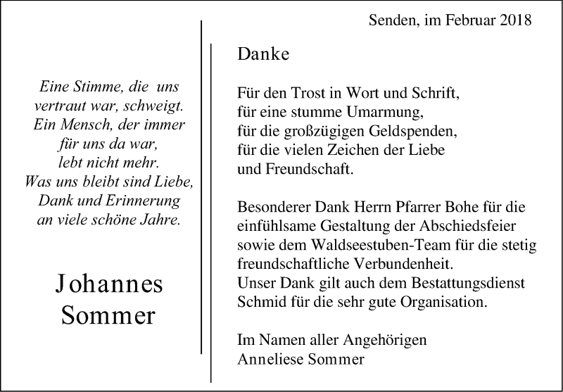 Hier finden Sie alle Traueranzeigen aus der Zeitung, die bisher für Johannes Sommer erschienen sind. Weitere Traueranzeigen, die in der Zeitung erscheinen, werden hier ebenfalls aufgelistet