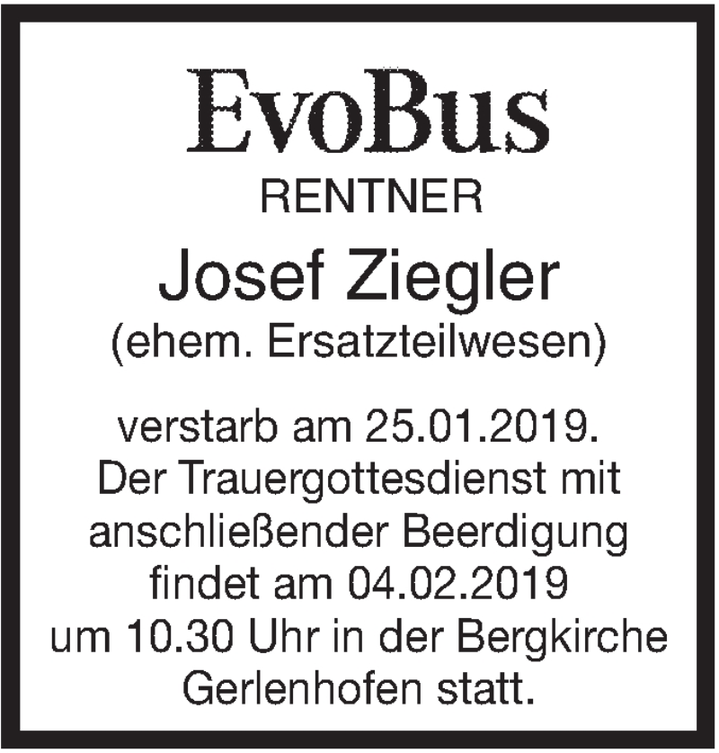 Hier finden Sie alle Traueranzeigen aus der Zeitung, die bisher für Josef Ziegler erschienen sind. Weitere Traueranzeigen, die in der Zeitung erscheinen, werden hier ebenfalls aufgelistet