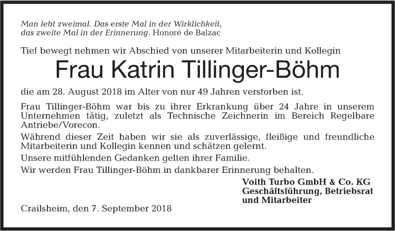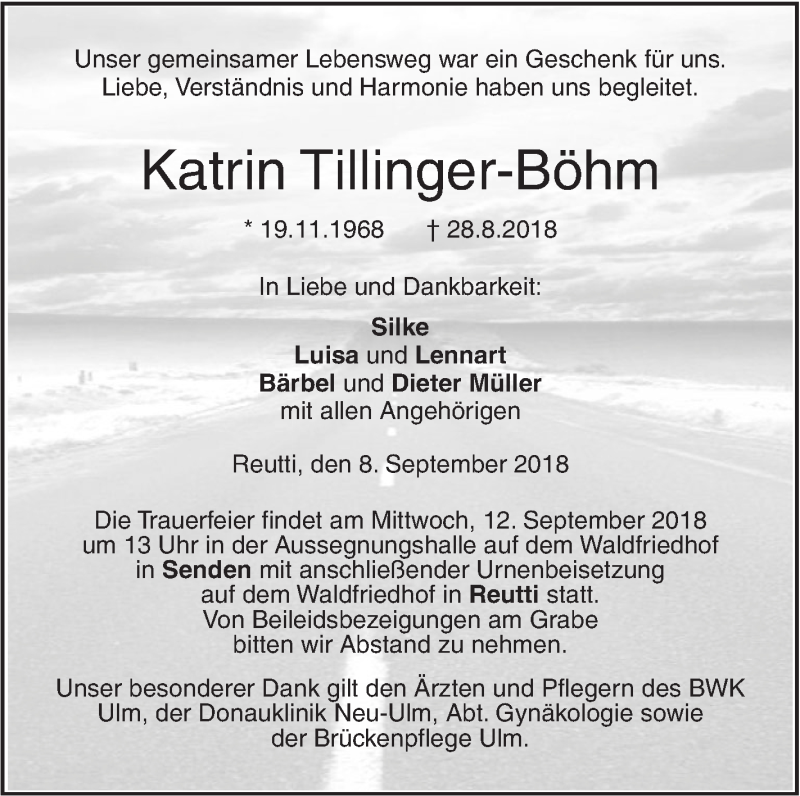 Hier finden Sie alle Traueranzeigen aus der Zeitung, die bisher für Katrin Tillinger-Böhm erschienen sind. Weitere Traueranzeigen, die in der Zeitung erscheinen, werden hier ebenfalls aufgelistet