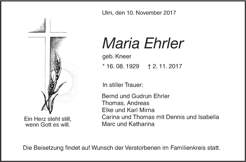 Hier finden Sie alle Traueranzeigen aus der Zeitung, die bisher für Maria Ehrler erschienen sind. Weitere Traueranzeigen, die in der Zeitung erscheinen, werden hier ebenfalls aufgelistet