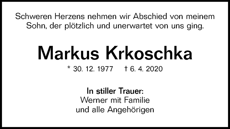 Hier finden Sie alle Traueranzeigen aus der Zeitung, die bisher für Markus Krkoschka erschienen sind. Weitere Traueranzeigen, die in der Zeitung erscheinen, werden hier ebenfalls aufgelistet