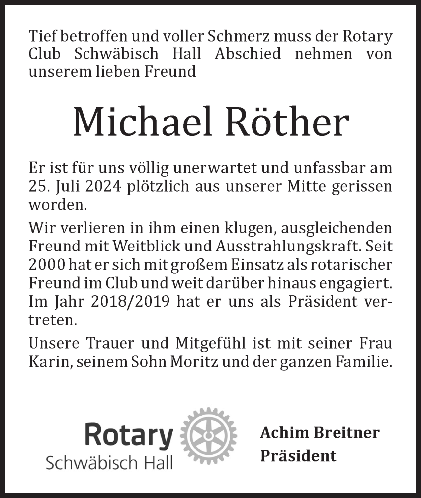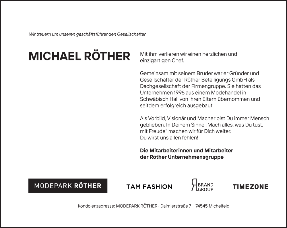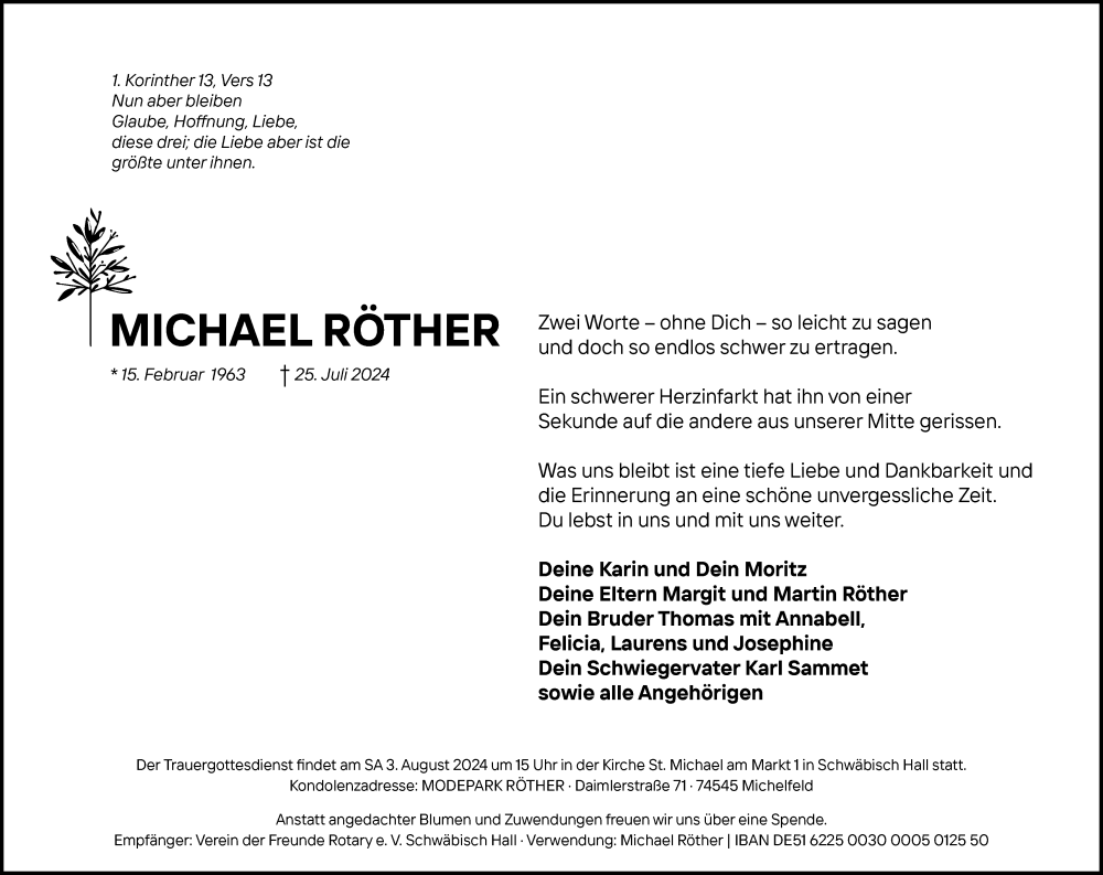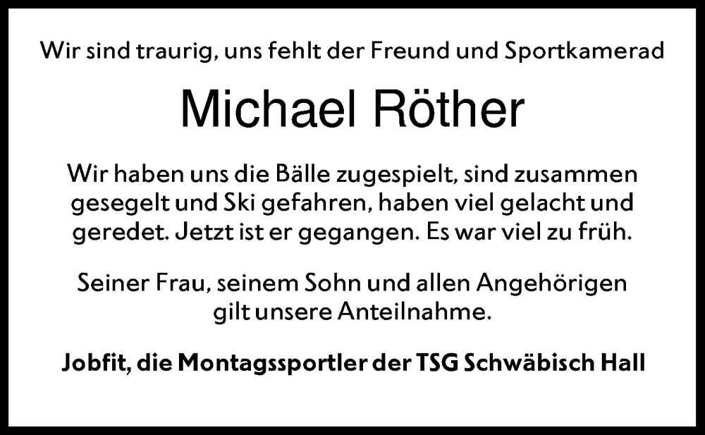 Hier finden Sie alle Traueranzeigen aus der Zeitung, die bisher für Michael Röther erschienen sind. Weitere Traueranzeigen, die in der Zeitung erscheinen, werden hier ebenfalls aufgelistet