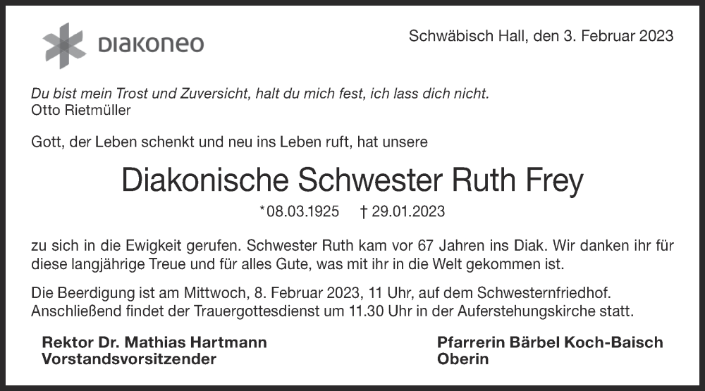 Hier finden Sie alle Traueranzeigen aus der Zeitung, die bisher für Ruth Frey erschienen sind. Weitere Traueranzeigen, die in der Zeitung erscheinen, werden hier ebenfalls aufgelistet