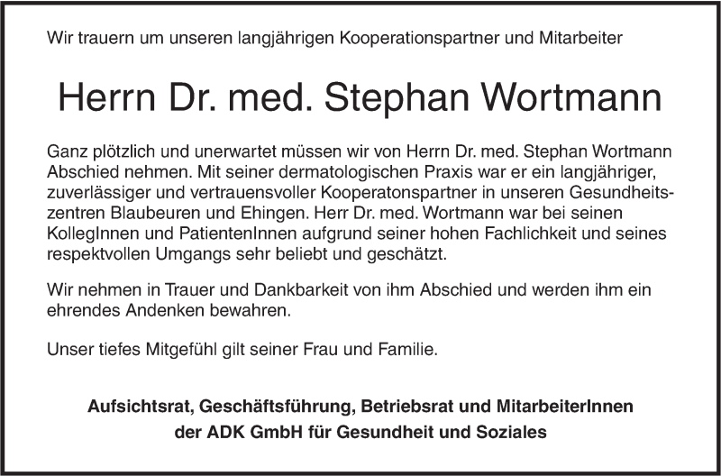 Hier finden Sie alle Traueranzeigen aus der Zeitung, die bisher für Stephan Wortmann erschienen sind. Weitere Traueranzeigen, die in der Zeitung erscheinen, werden hier ebenfalls aufgelistet