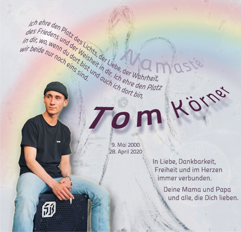 Hier finden Sie alle Traueranzeigen aus der Zeitung, die bisher für Tom Körner erschienen sind. Weitere Traueranzeigen, die in der Zeitung erscheinen, werden hier ebenfalls aufgelistet